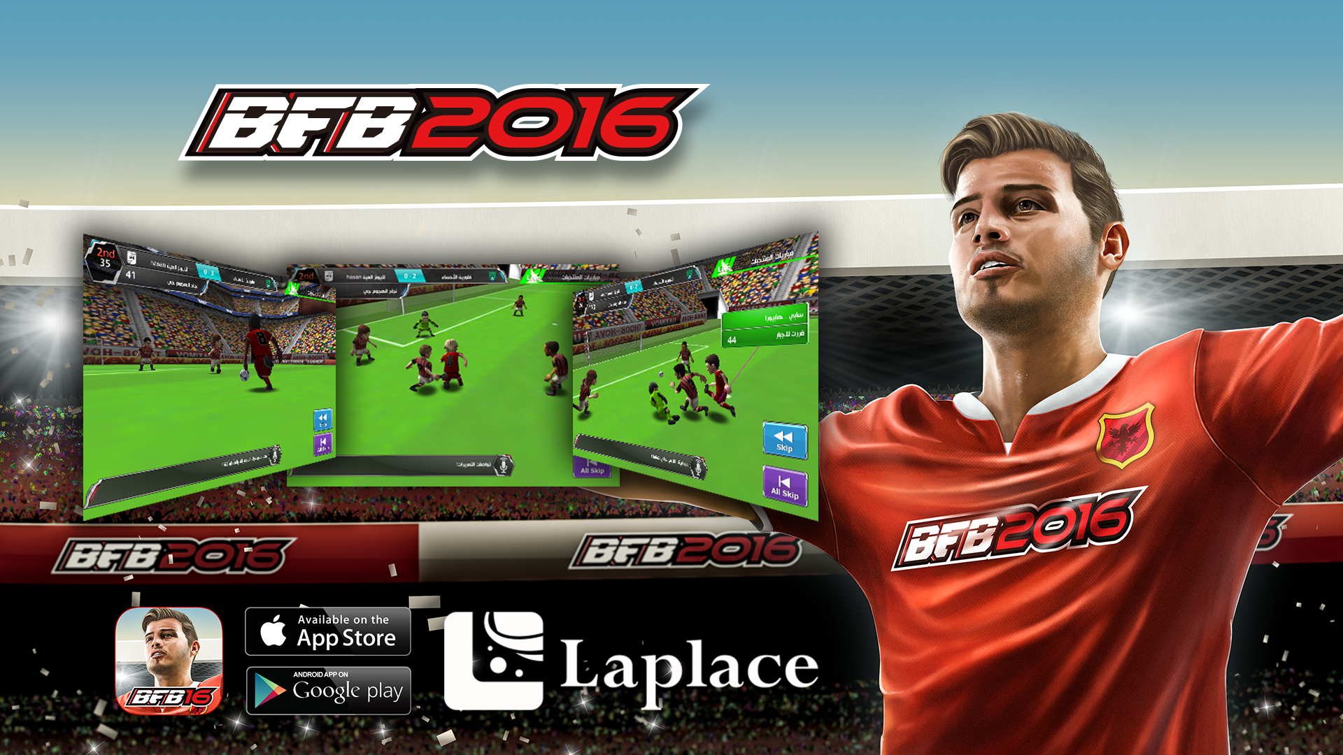 A social game on mobile for fans that love football, Match scenes are played out with dynamic, 3D visuals thanks to the Interactive Match System (IMS), which depicts the action according to the team and formation chosen by users. Player could join an alliance with other players to make their limited team with unlimited player list. Users can also collect new club emblems and player kits. an then join the war of club teams. When users start playing BFB 2016 first they play lite tournament to get experience then the real war of game starts with the king pin teams, they choose from more than 22 countries. During the game, users can participate in regional ranking tournaments, starting out by competing with other players from the same hometown to qualify for the next stage, with the ultimate goal of becoming the best club in the country. and they can download various gift items to increase player skill During these tournaments users can borrow up to five players from their friends' clubs to strengthen their own team, as they progress through the four stages of the tournament: hometown, local region, prefecture, country. And winners of each phase receive special prizes.