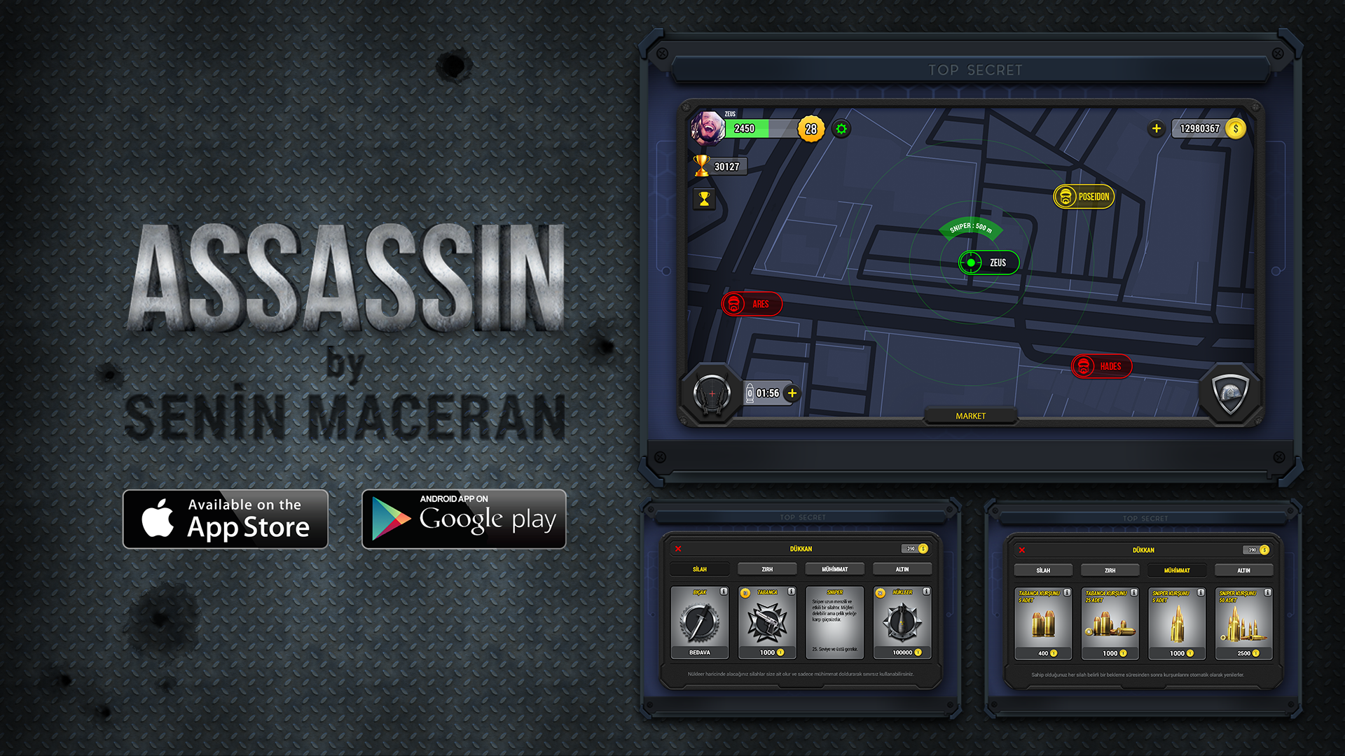 The “Assassin” game is a shooting mobile game in which players can play in the real cities with real people. Players can attack others by using their weapons range or can be protected by their armor. Moreover, all these can be done while walking or sitting in their own cities via Android phone or iphone.